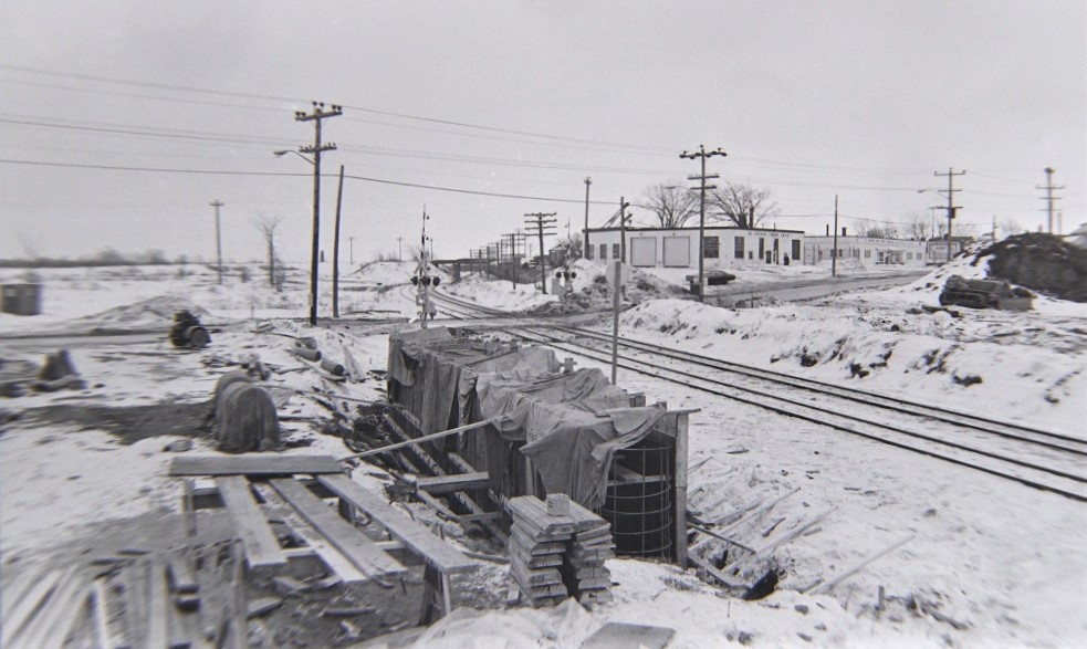 In January, 1969, another view of the crossing and CP in the distance. Footings for the re-aligned Division Street are in place, as are gates now protecting the crossing!